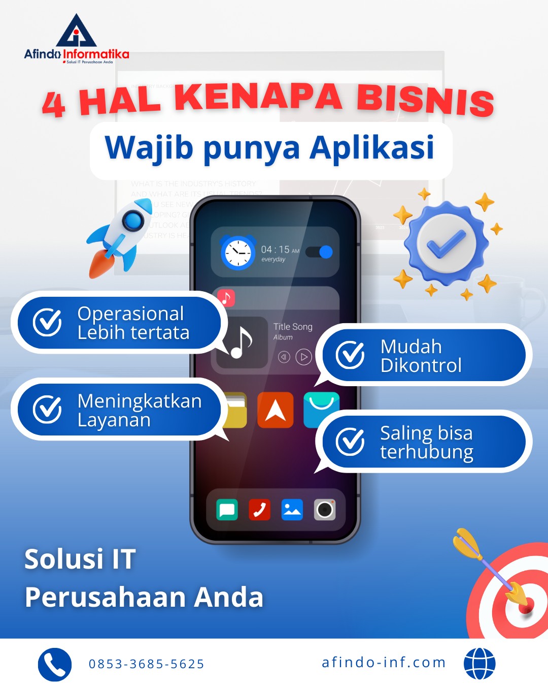 CV Afindo Informatika hadir sebagai mitra teknologi yang siap melayani kebutuhan aplikasi bisnis Anda. Dengan pengalaman dalam pengembangan aplikasi custom berbasis Android, iOS, dan Web, setiap solusi dirancang sesuai permintaan dan kebutuhan spesifik perusahaan. Setiap fitur bisa disesuaikan (by request), mulai dari manajemen operasional, integrasi sistem, hingga layanan pelanggan yang lebih interaktif. Bersama Afindo Informatika, wujudkan transformasi digital yang terukur, modern, dan mendukung pertumbuhan bisnis jangka panjang.
