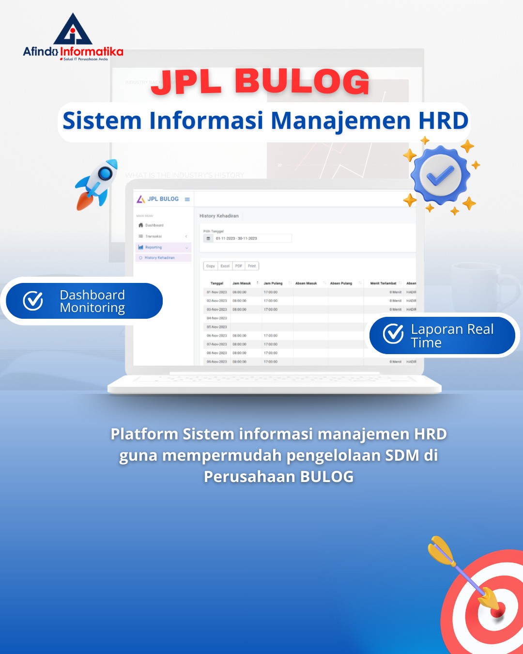 JPL Bulog adalah platform sistem informasi manajemen HRD berbasis web yang dirancang khusus untuk membantu perusahaan BULOG dalam mengelola sumber daya manusia secara digital, cepat, dan terintegrasi.