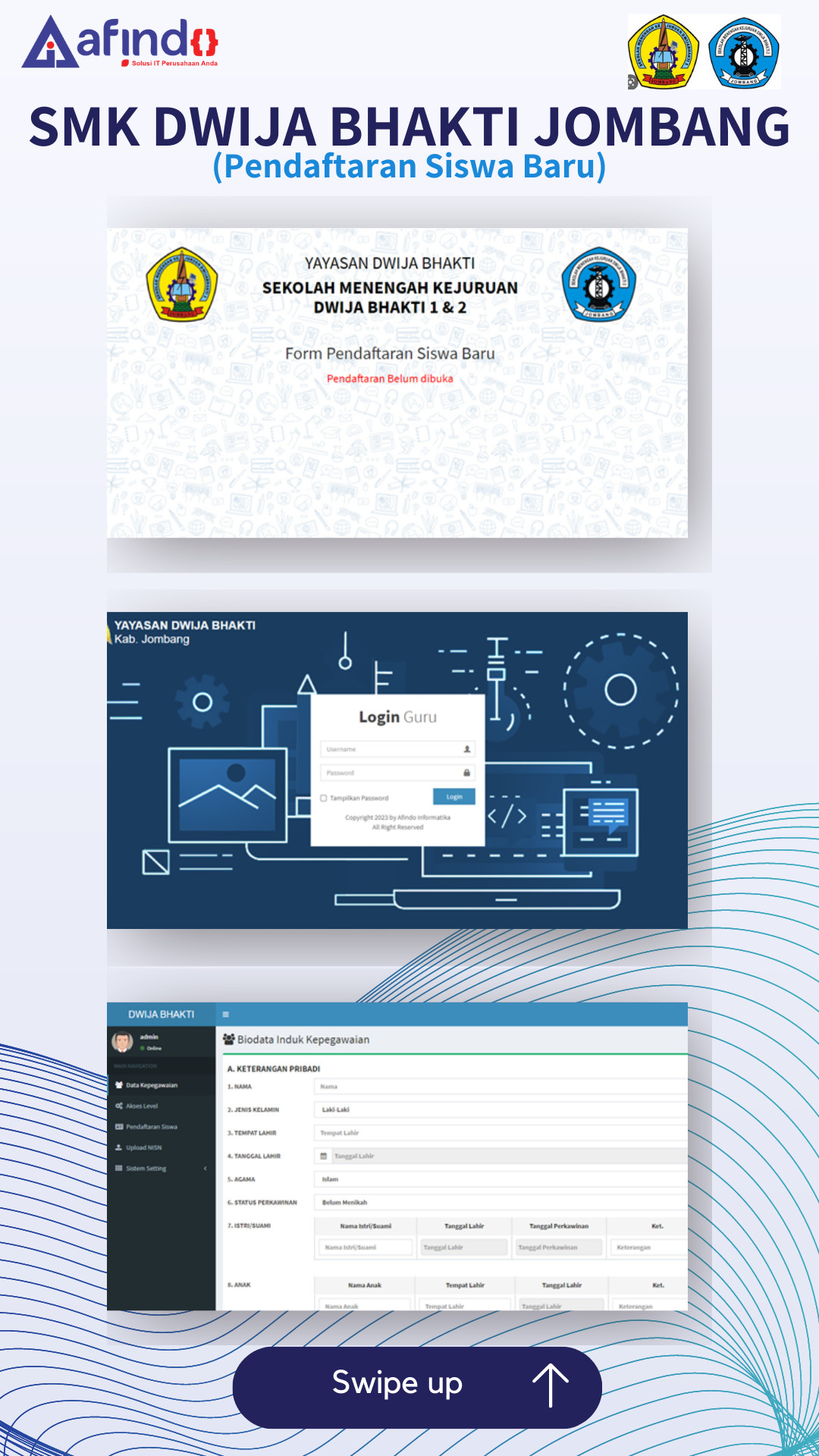 PPDB SMK Dwija Bakti I & II adalah aplikasi berbasis Web yang dirancang khusus untuk mempermudah proses Penerimaan Peserta Didik Baru (PPDB) secara digital, terstruktur, dan transparan.