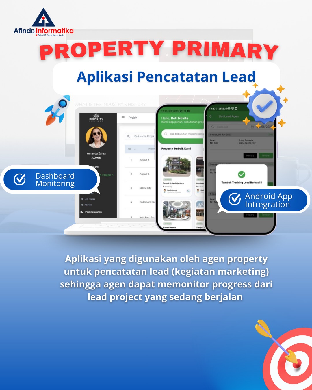 Aplikasi ini membantu agen dan leader properti untuk bekerja lebih efisien, terstruktur, dan profesional dalam setiap aktivitas penjualan dan pemasaran.