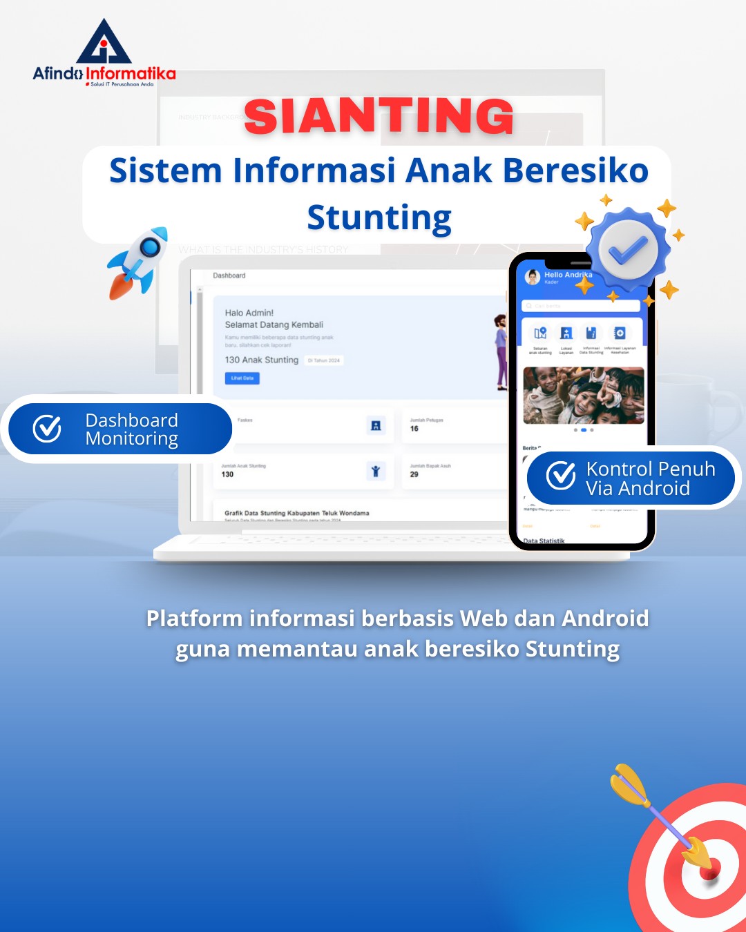SIANTING (Sistem Informasi Anak Berisiko Stunting) adalah platform berbasis Web App dan Mobile (Android) yang dirancang untuk membantu pemerintah, tenaga kesehatan, serta orang tua asuh dalam memantau, mendeteksi, dan mengendalikan risiko stunting pada anak.
