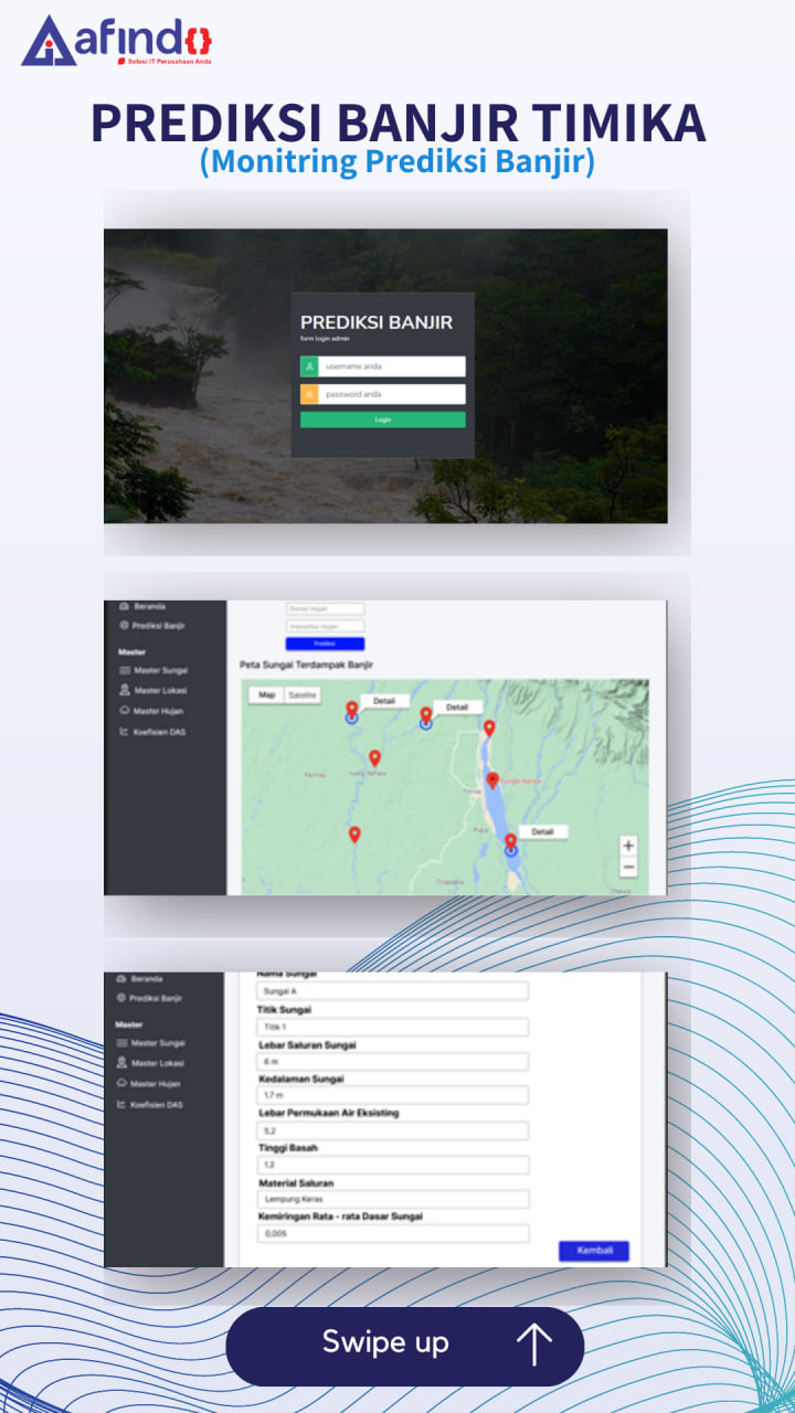 SIMULASI PREDIKSI BANJIR adalah platform berbasis web yang dirancang untuk membantu instansi dan pihak terkait dalam memantau serta memprediksi potensi banjir secara lebih cepat, akurat, dan terintegrasi.